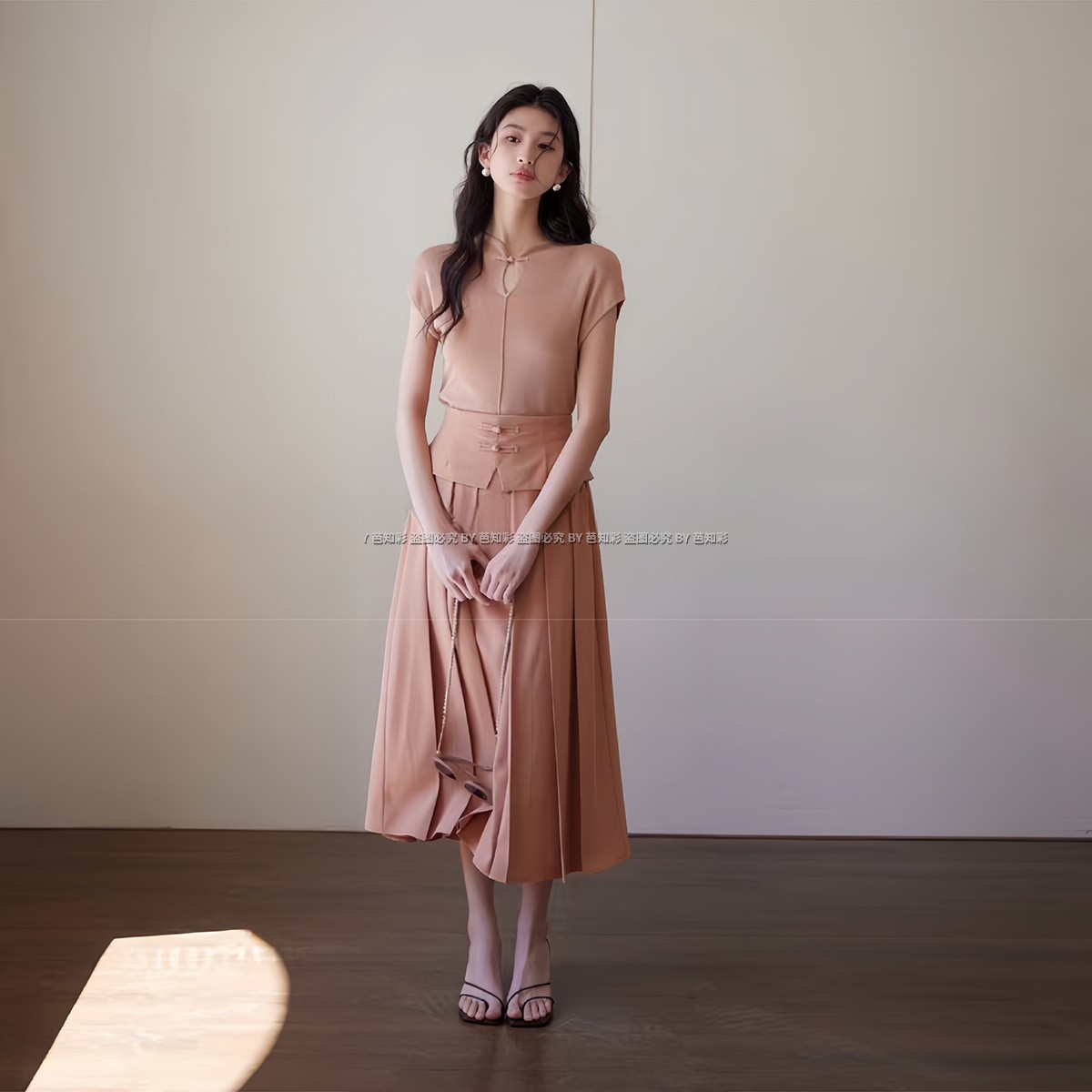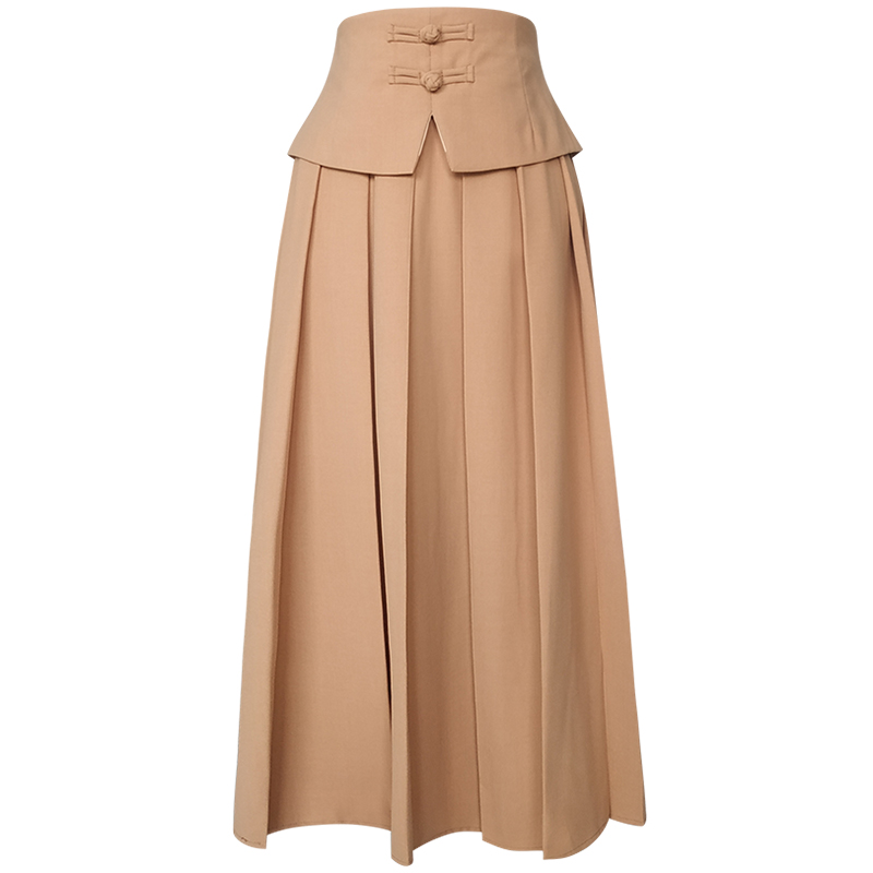 出奇的好穿搭~垂坠新中式高腰中长百褶裙女秋秋设计感半身裙6911