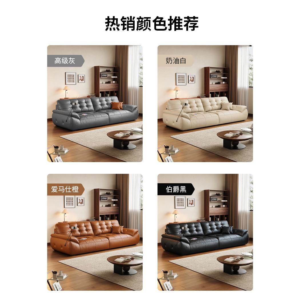 真皮沙发云朵中古2025新款客厅躺平头层牛皮黑色覆古太空坐感沙发