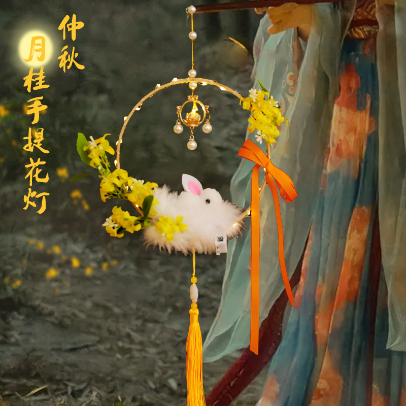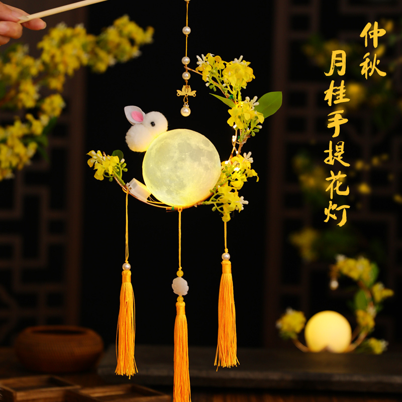 中秋节灯笼挂件古风汉服装饰手提月球花灯手工竹编diy材料包儿童