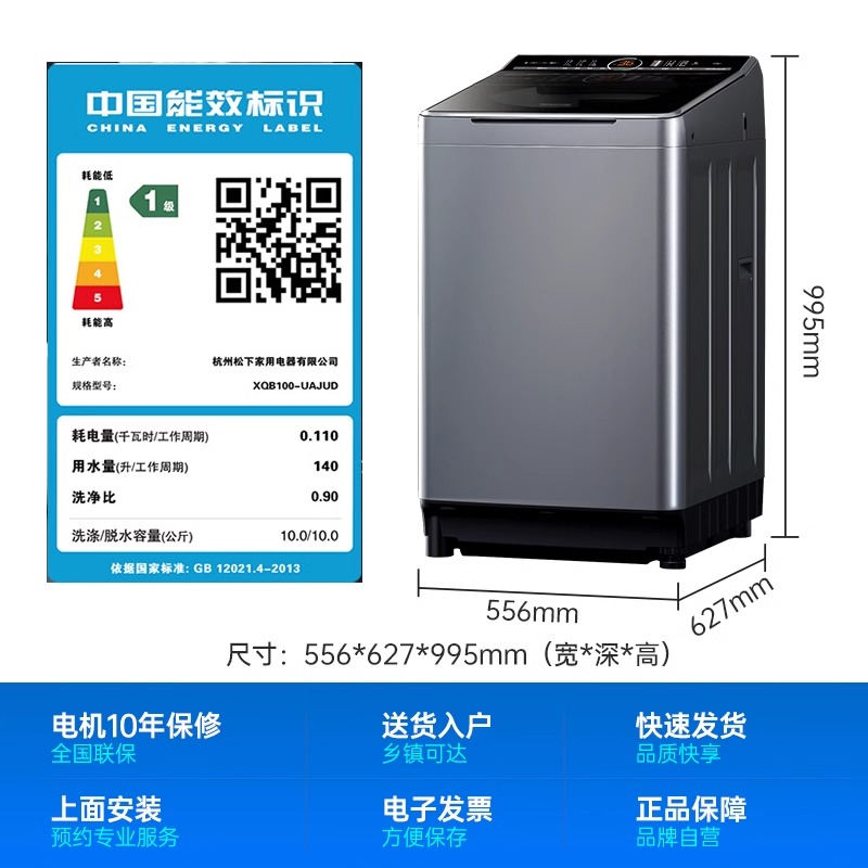 Panasonic/松下XQB100-UAJUD变频直驱波轮洗衣机全自动羽绒服真丝
