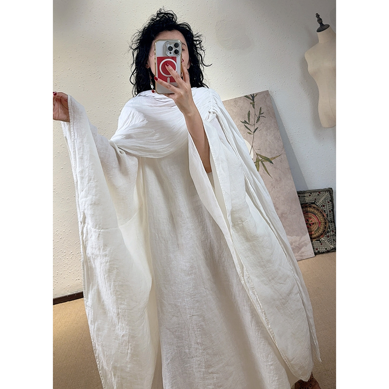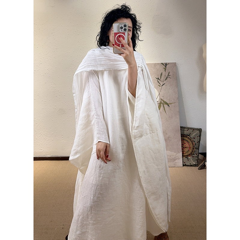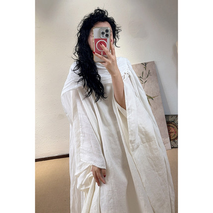 YIMIAN 朦胧美感亚麻“虚室生白”重工禅意高级感时尚连衣裙23421