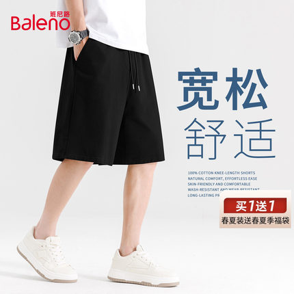 班尼路黑色运动短裤男款夏季户外通勤简约五分裤宽松休闲裤子男A