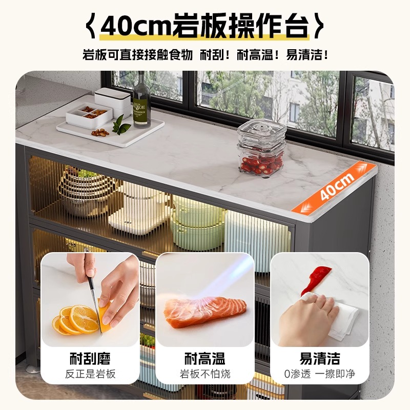 家用落地厨房置物柜子岩板餐边柜靠墙一体多层多功能储物收纳橱柜