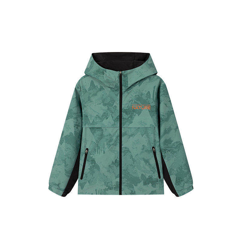 361度男童防风运动服连帽新品2026春秋风衣儿童迷彩外套K52616601