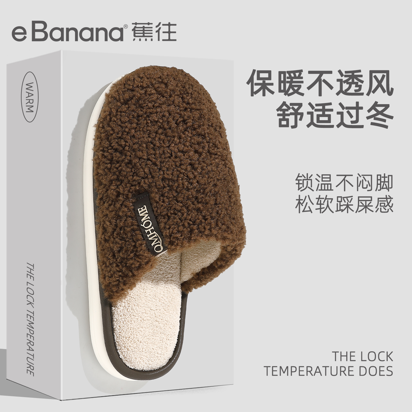 蕉往抑菌防臭棉拖鞋男士秋冬季家居室内情侣保暖毛绒拖鞋女冬天