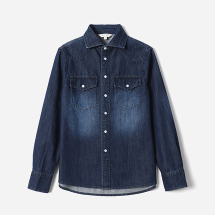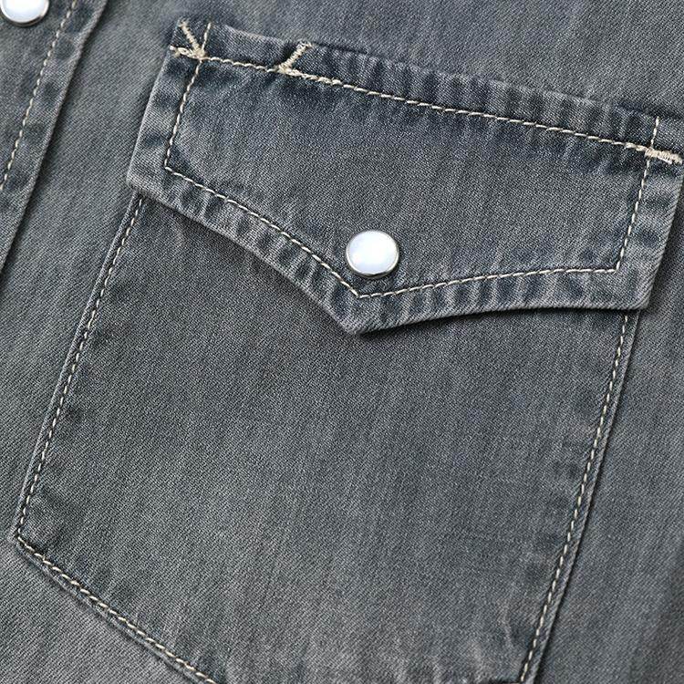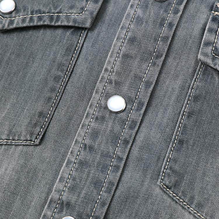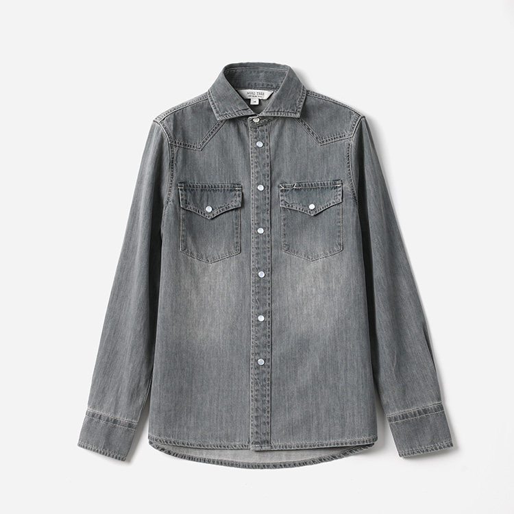 WCS07110 茉莉雅集 B*C摩登老钱复古水洗磨白全棉牛仔长袖衬衫女