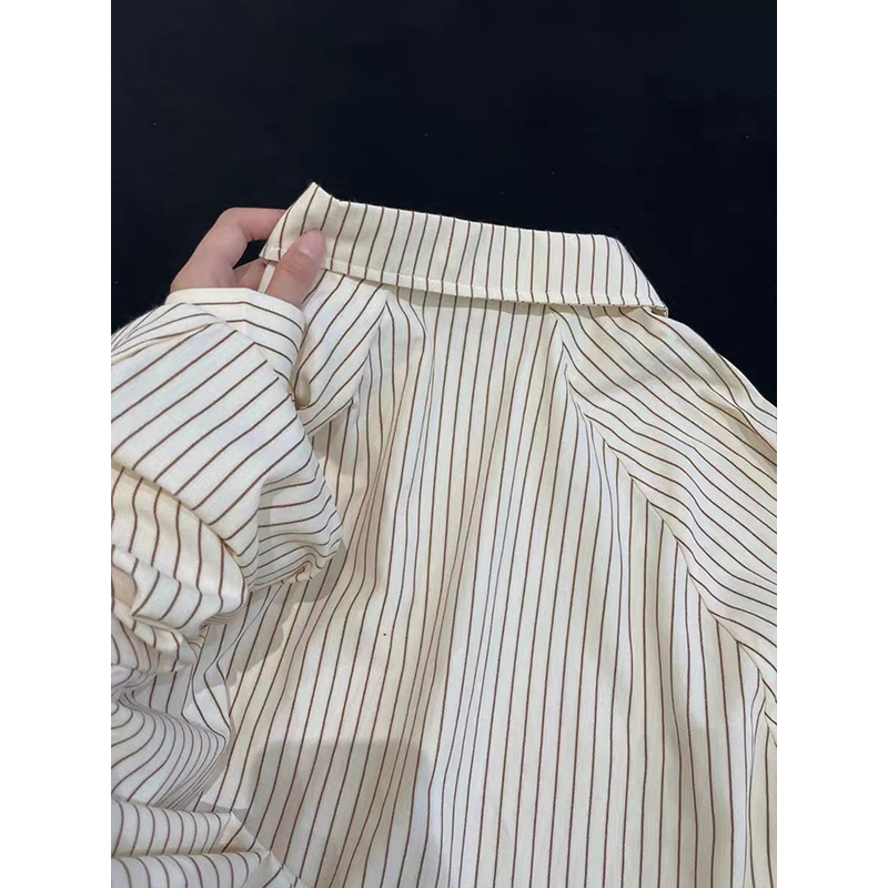 拉夏贝尔法式条纹衬衫女2025春秋新款设计感小众长袖polo领衬衣
