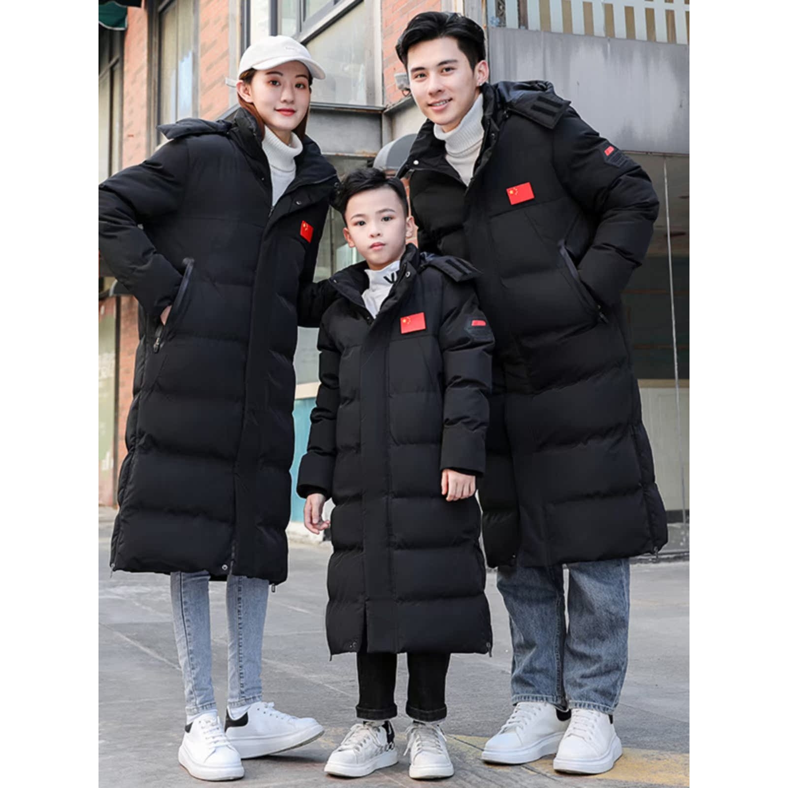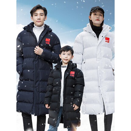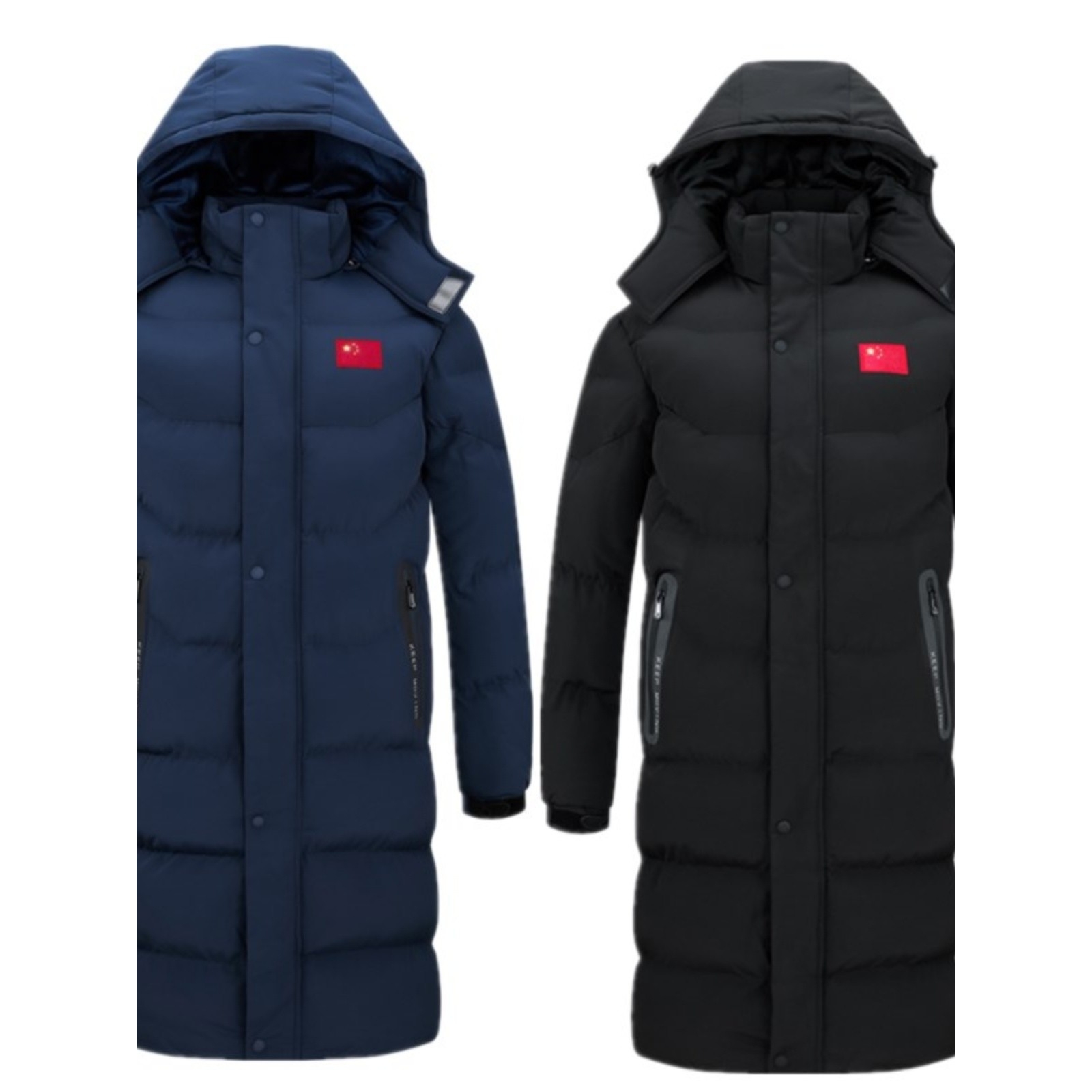 国家队冬季休闲长款运动羽绒棉服男女加绒过膝棉衣冬训大衣体育生
