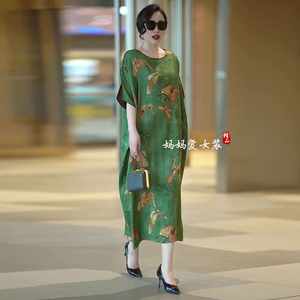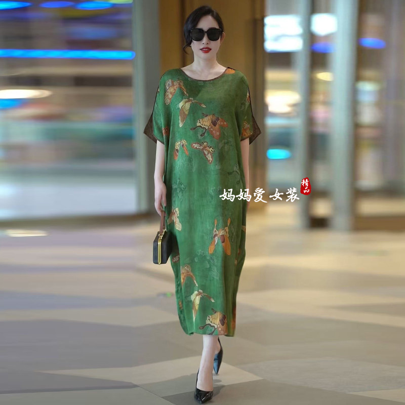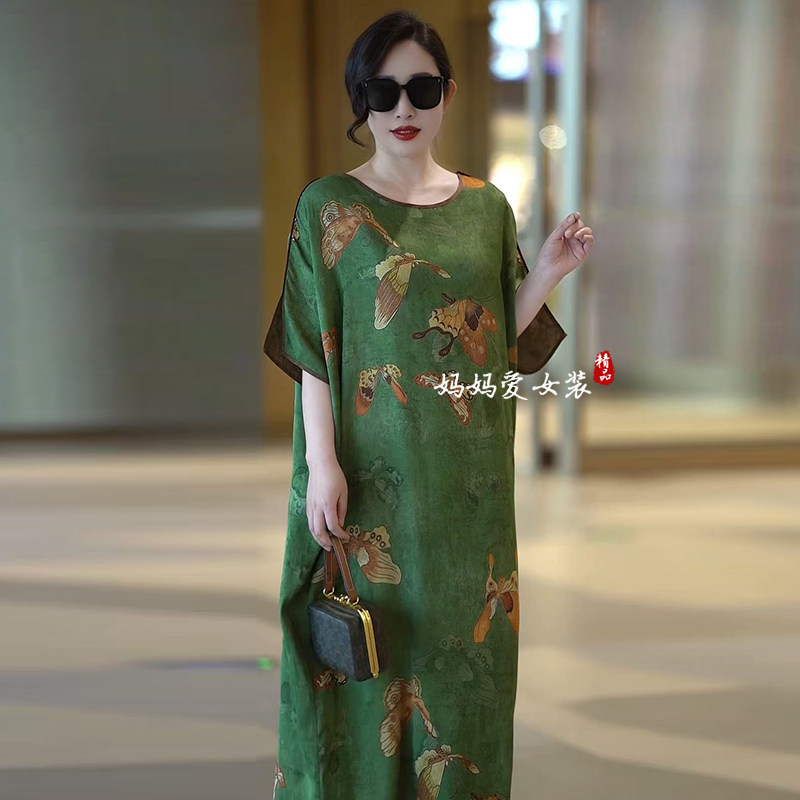 阔太太香云纱连衣裙2025夏季新款妈妈装复古改良旗袍桑蚕丝真丝裙