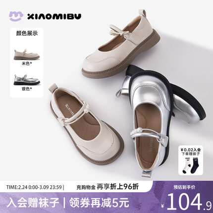 小米步女童皮鞋2026春季新款洋气珍珠公主鞋儿童软底轻便演出单鞋