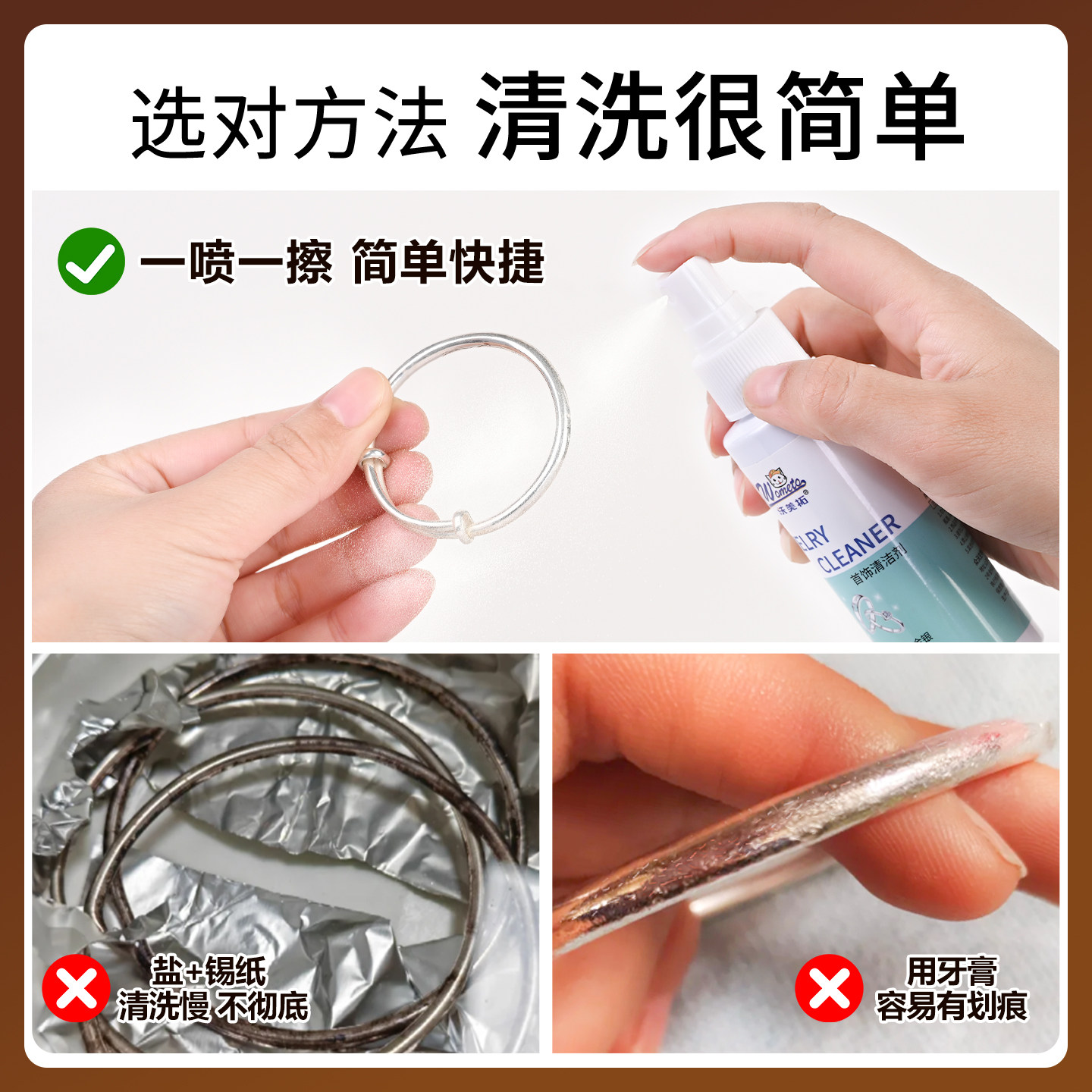 洗银水银饰耳钉清洁剂增亮抛光银喷雾去养化清洗首饰手镯保养工具