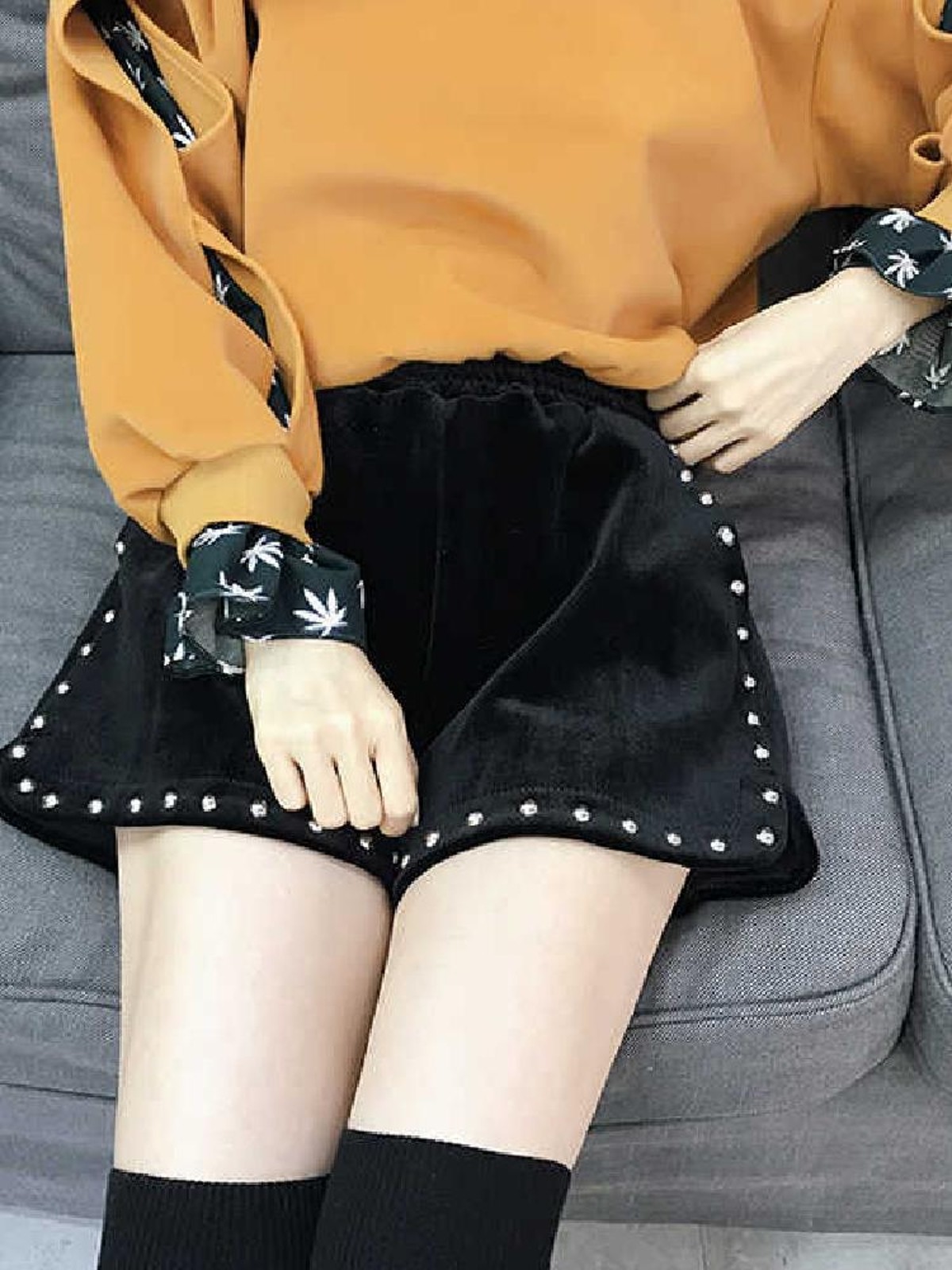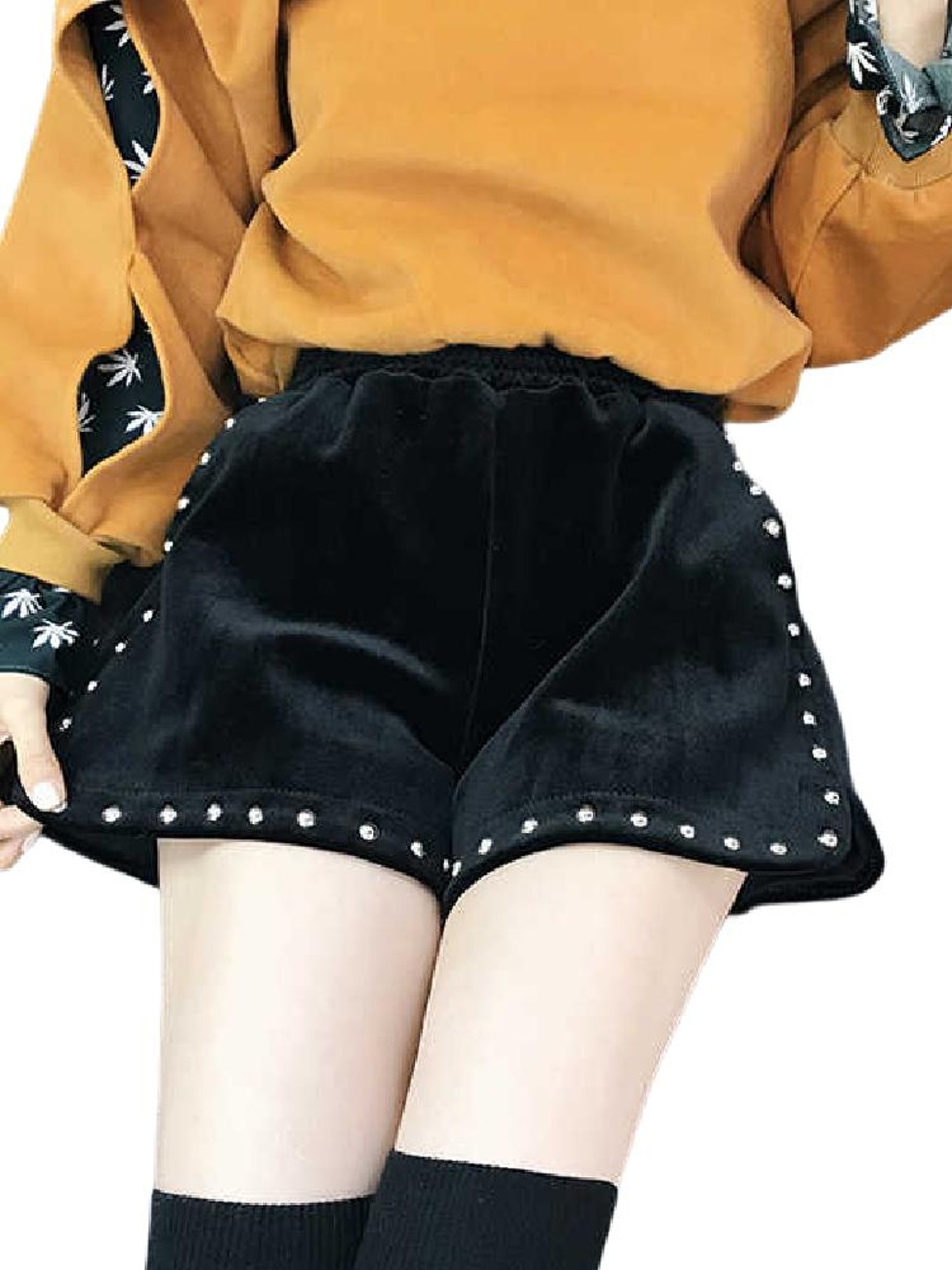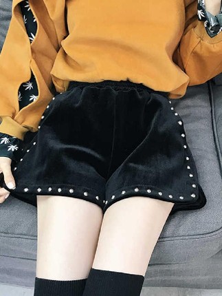 韩版高腰阔腿宽松显瘦铆钉短裤女2025年秋冬季新款女装加厚裤靴裤