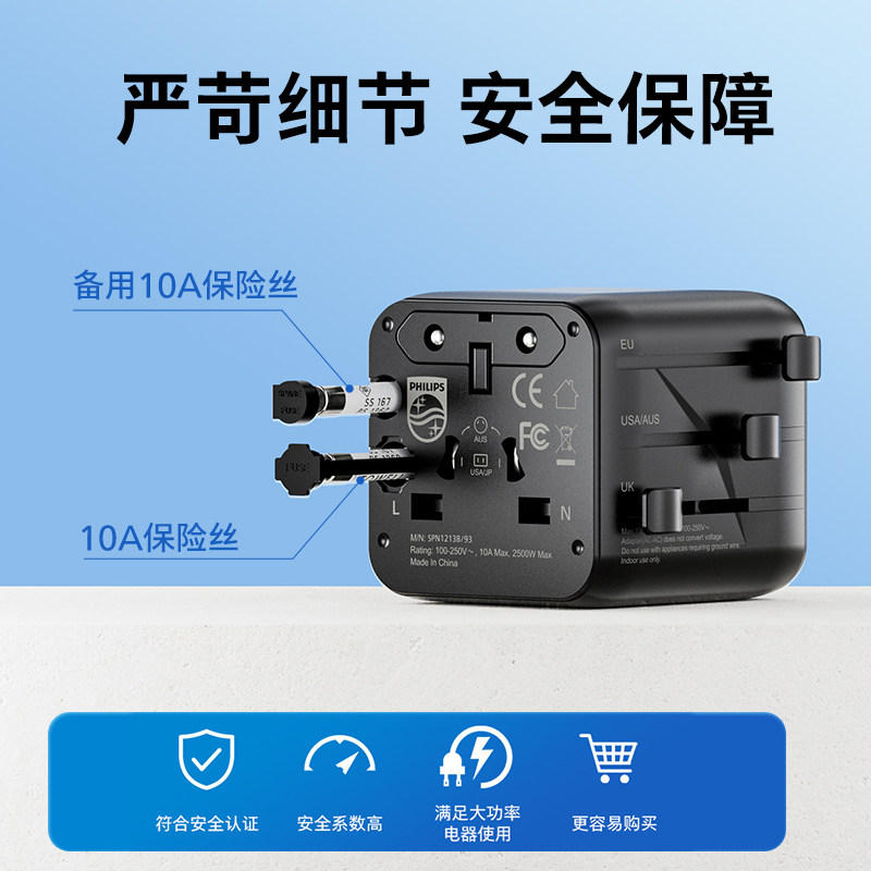 飞利浦全球多国通用插座头器国际旅行出国留学转换插头mini随身装