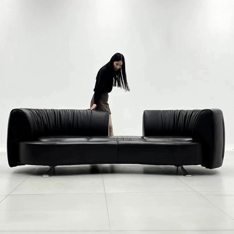 意式极简滑轨沙发度旋转靠背弧形推拉小户型双三人黑色沙