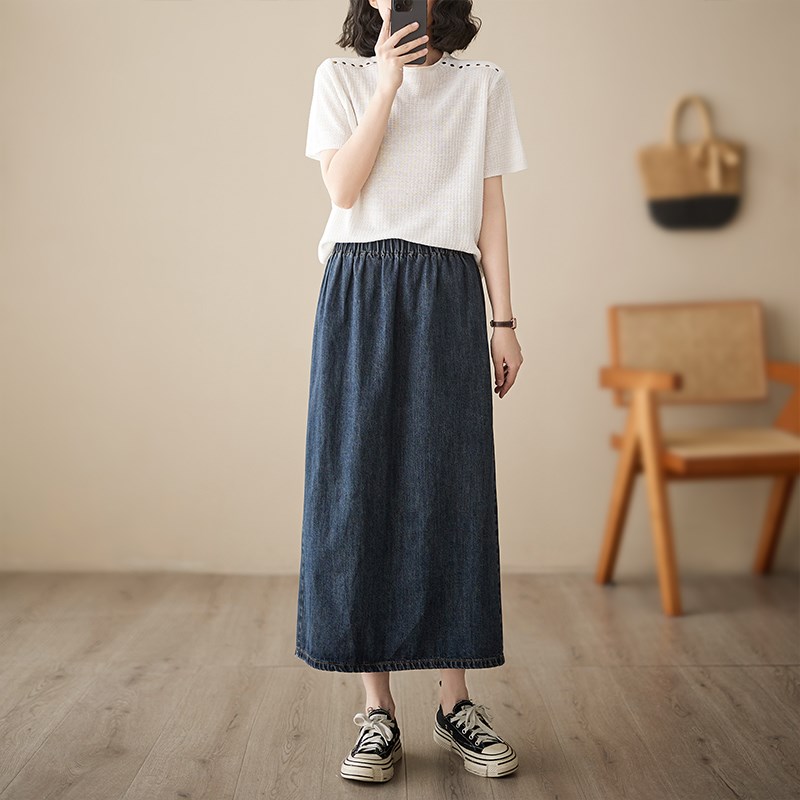 复古牛仔半身裙女2024年新款夏季中长款高腰显瘦a字开叉长裙裙子