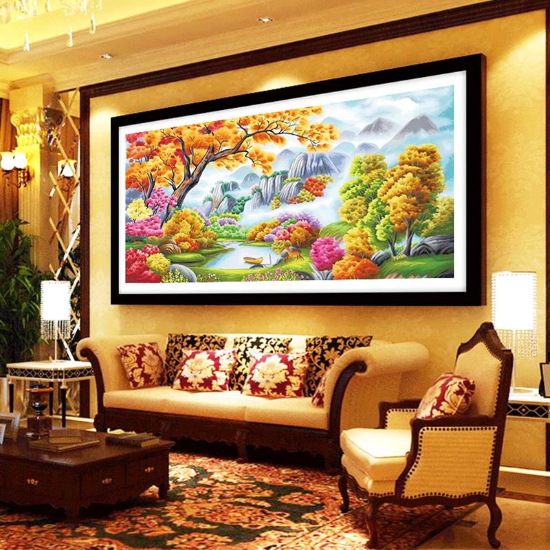2024钻石画手工diy满钻客厅5d十字绣风景砖石贴画新款世外桃源