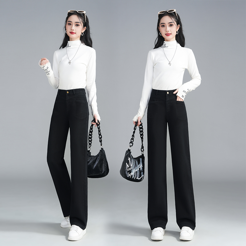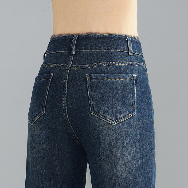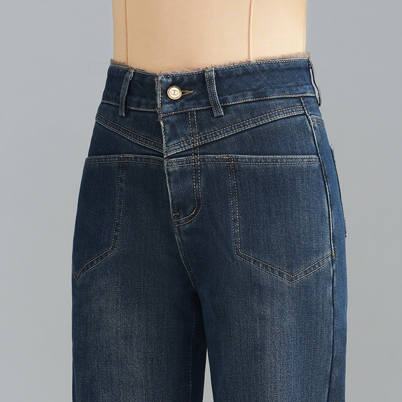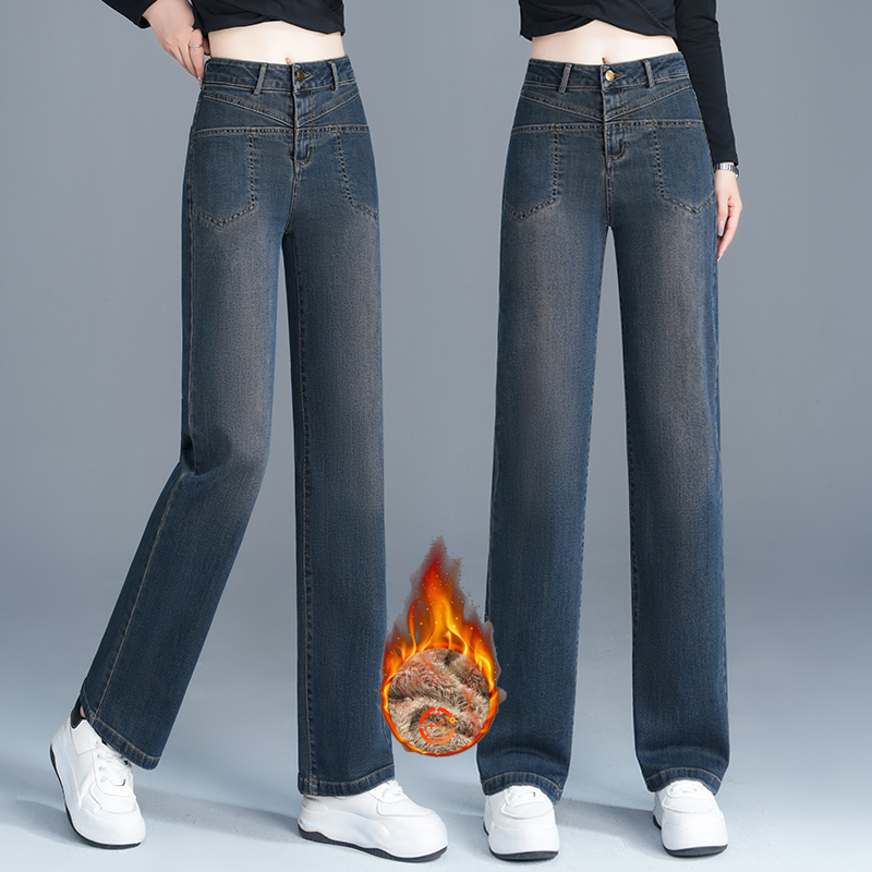 逸阳女裤折扣店2025新款冬装品牌牛仔裤加绒加厚高腰窄版阔腿裤子