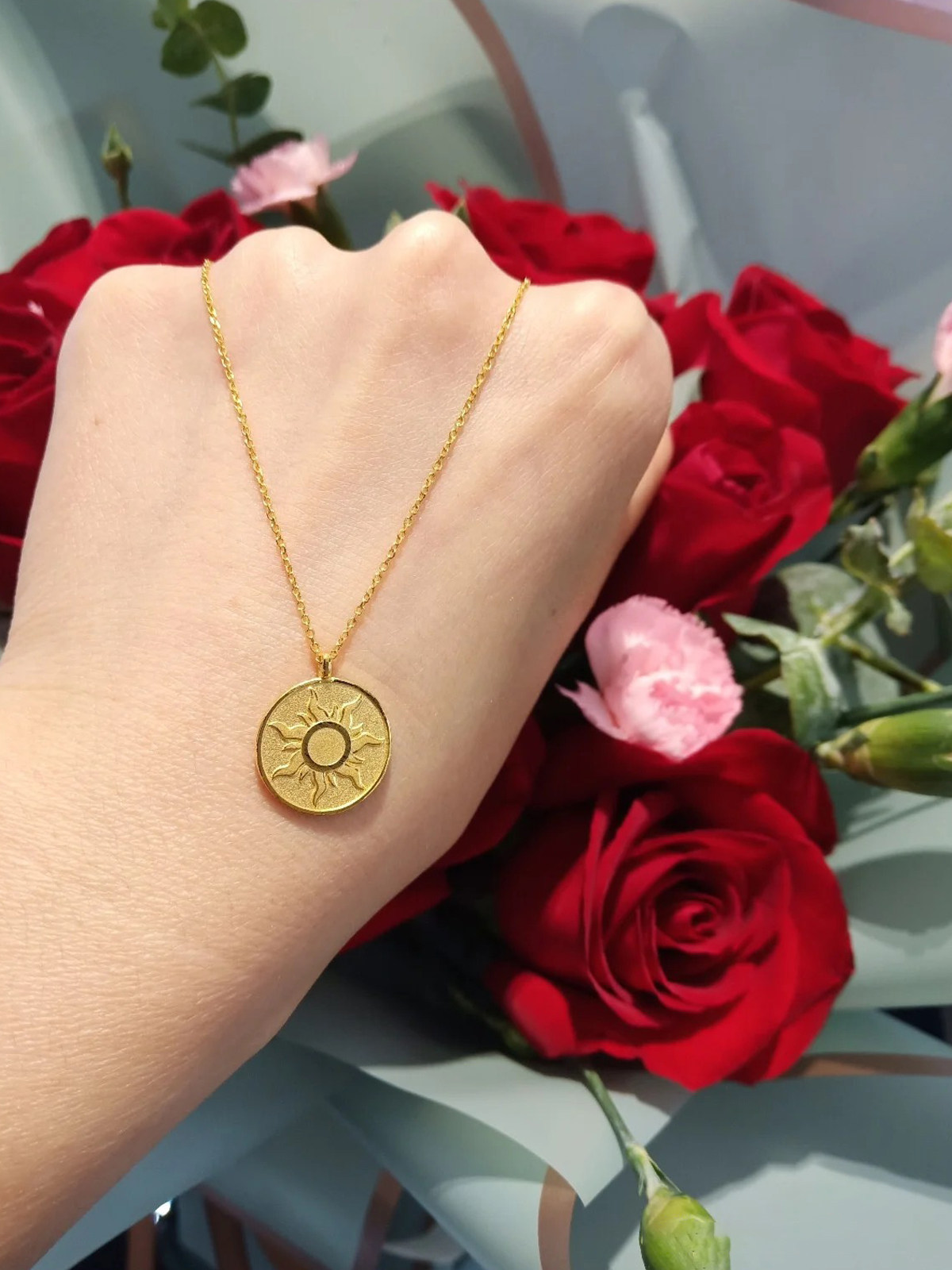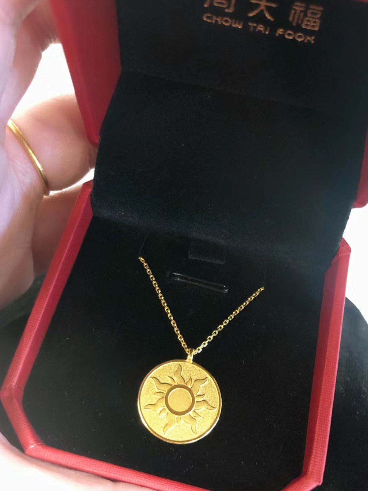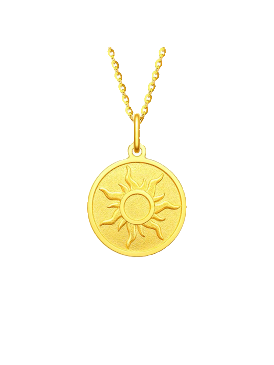 周大福简约太阳圆牌足金黄金项链
