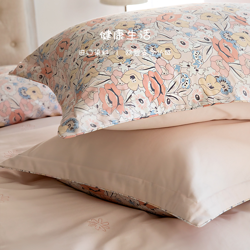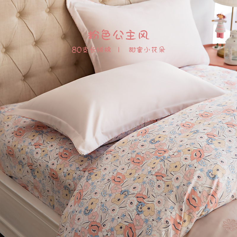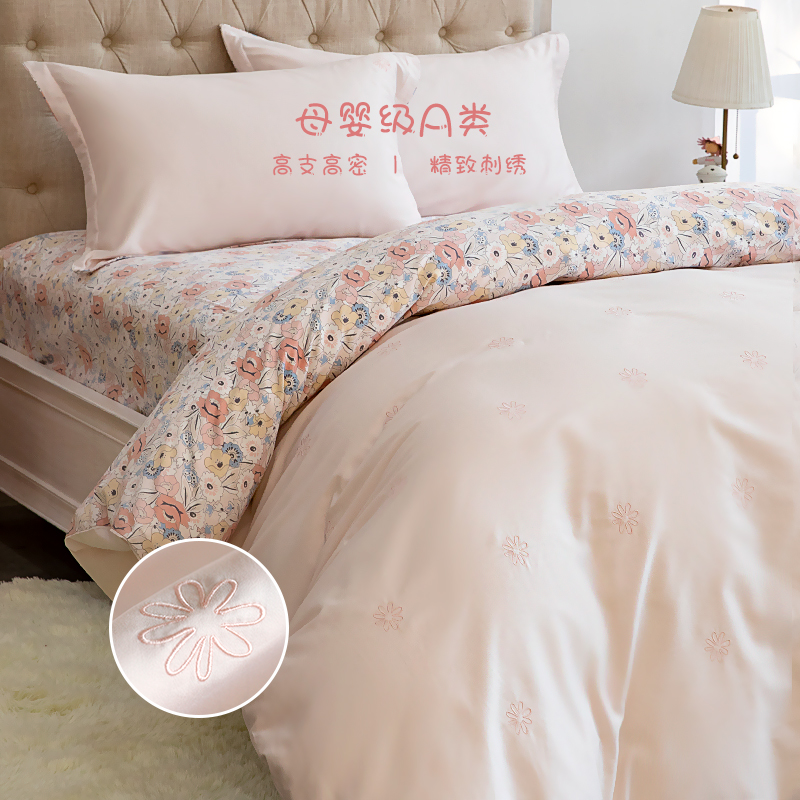 蓝铂儿童纯棉四件套全棉女孩刺绣粉色公主风仙女风床品奈音庭院