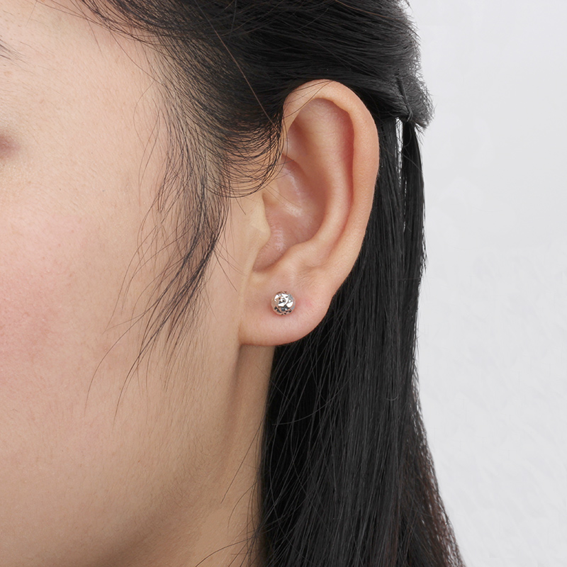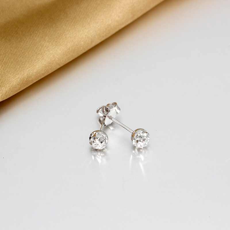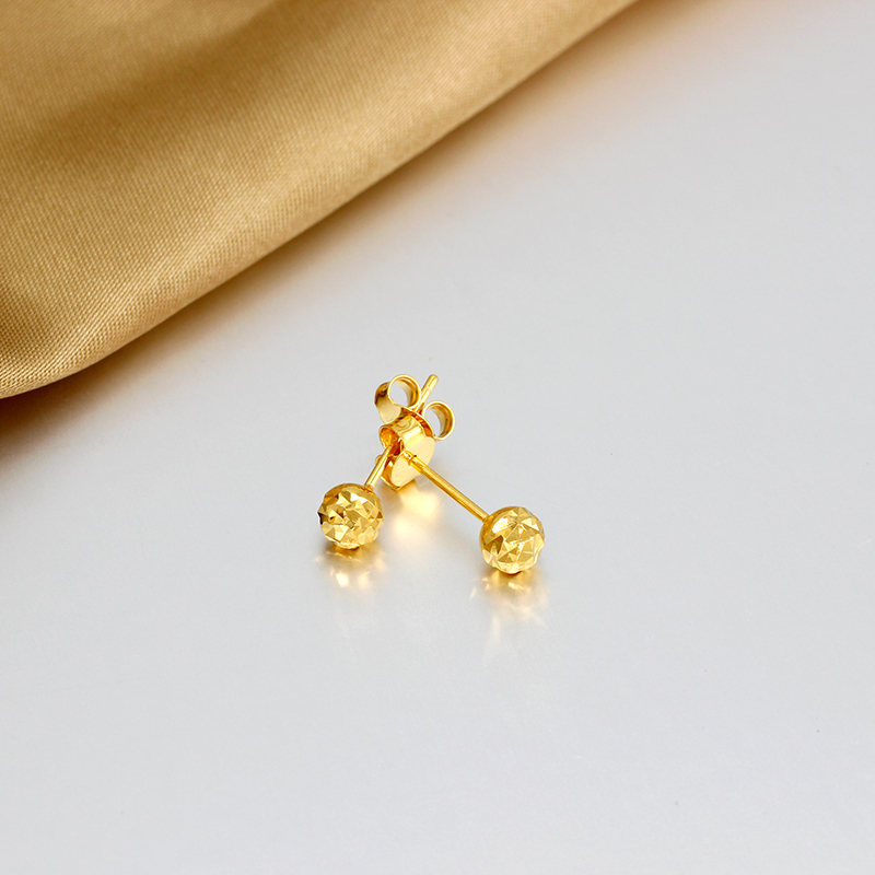 弥高珠宝18K耳钉黄金玫瑰金白金简约圆珠形车花款泡钉耳饰素金