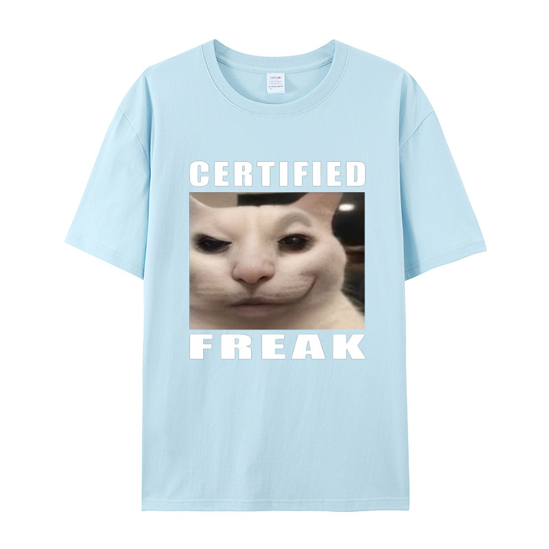 怪猫meme表情包印花棉短袖T恤有个性的男女情侣款上衣