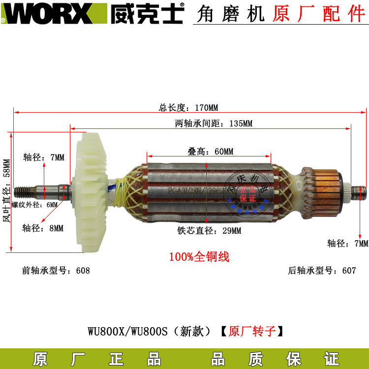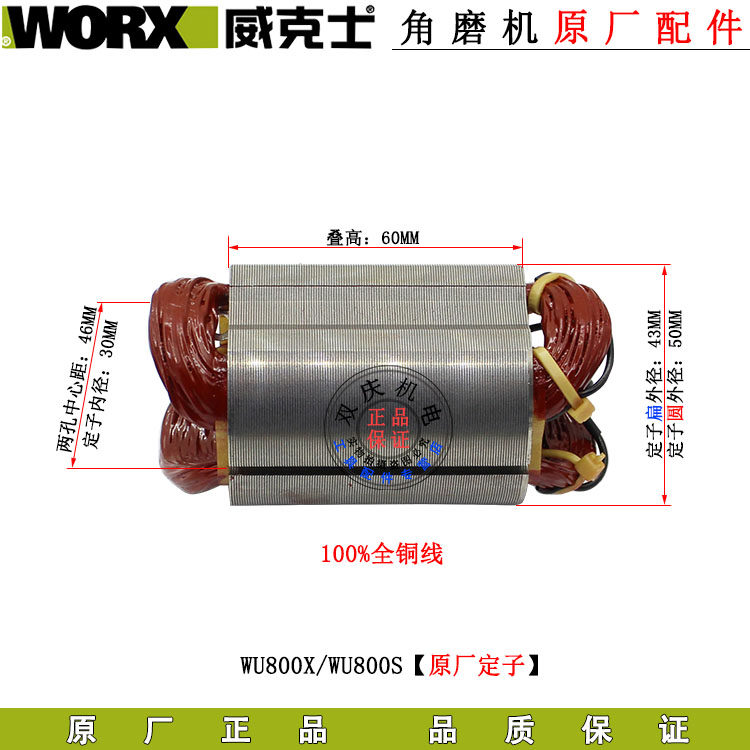 威克士WU800X角磨机原厂配件转子定子机壳开关碳刷切割机头壳电机
