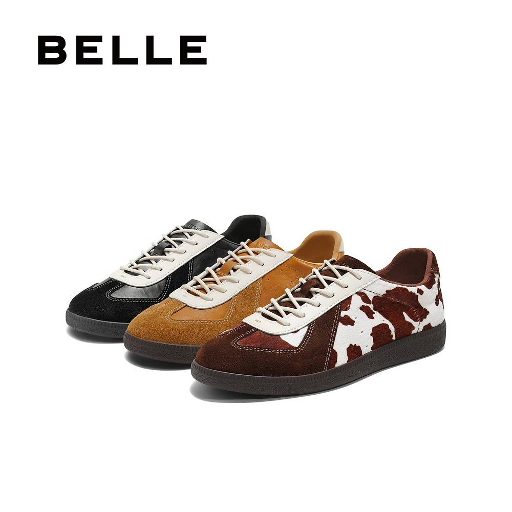 百丽复古撞色德训鞋女2025秋新商场同款舒适薄底休闲板鞋BBSC2CM5