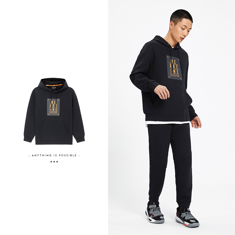 李宁韦德系列男子套头连帽卫衣春秋长袖帽衫运动休闲服AWDS193