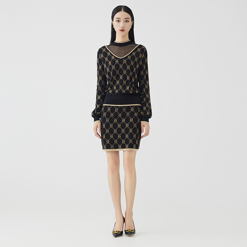 KODICE针织半身裙子秋冬新款修身烫钻轻奢低调设计感包臀短裙半裙