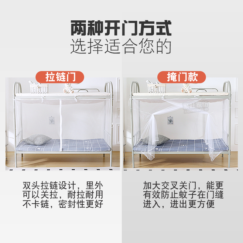 上下铺蚊帐学生宿舍专用90x190cm单人床帐拉链款家用挂式老式纹账