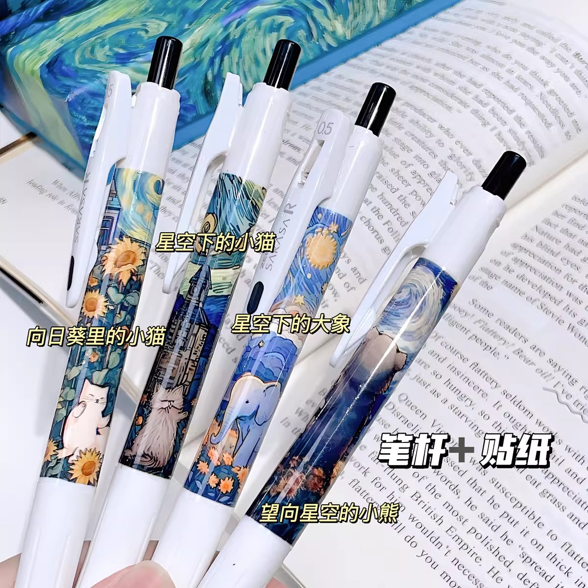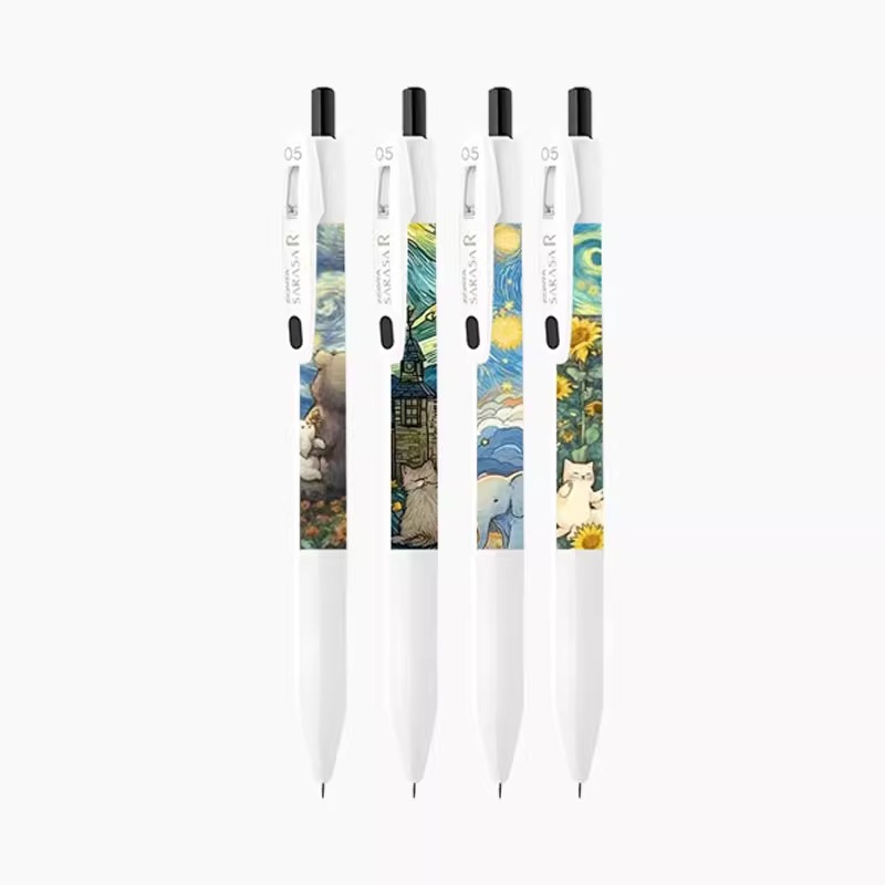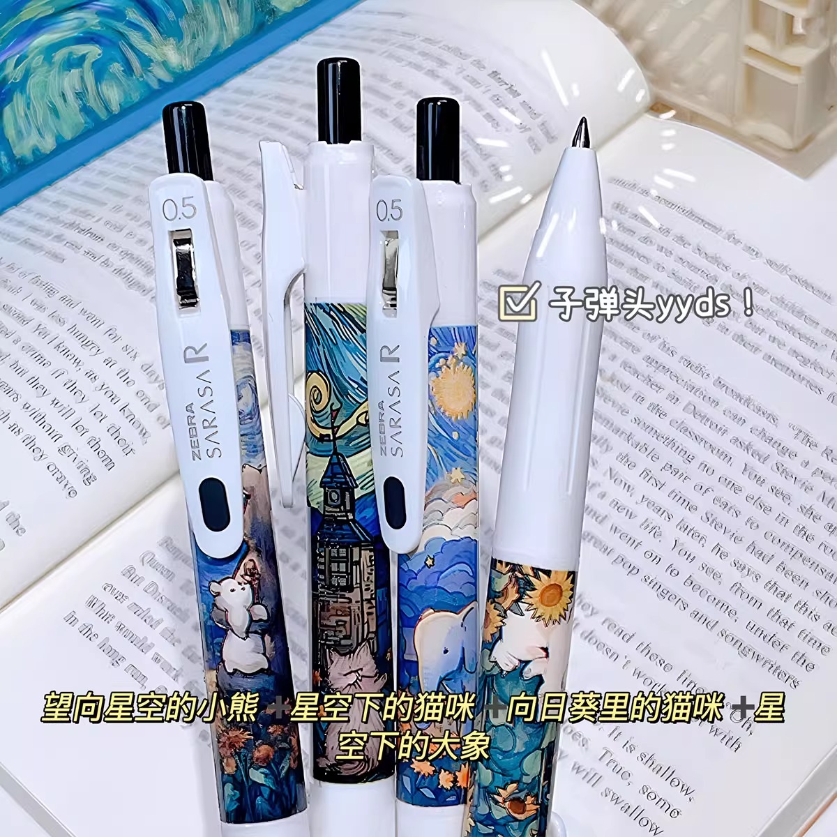 日本ZEBRA斑马中性笔限定梵高二代新款DIY笔JJ29浓墨速干顺滑学生考试按动笔JJ15可换替芯签字笔