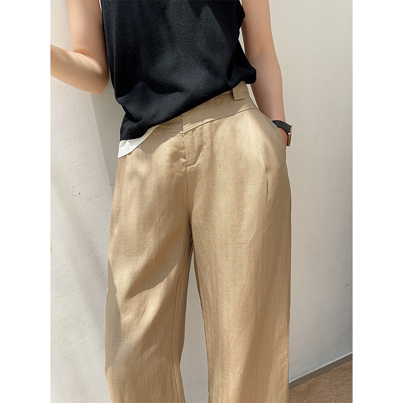 卡其色莱赛尔天丝亚麻阔腿裤秋季