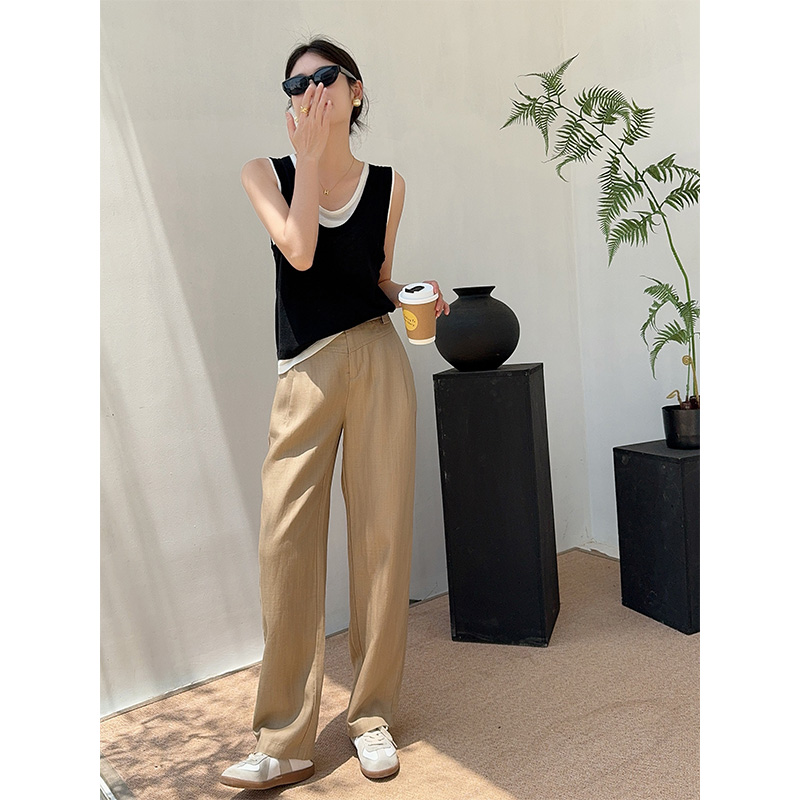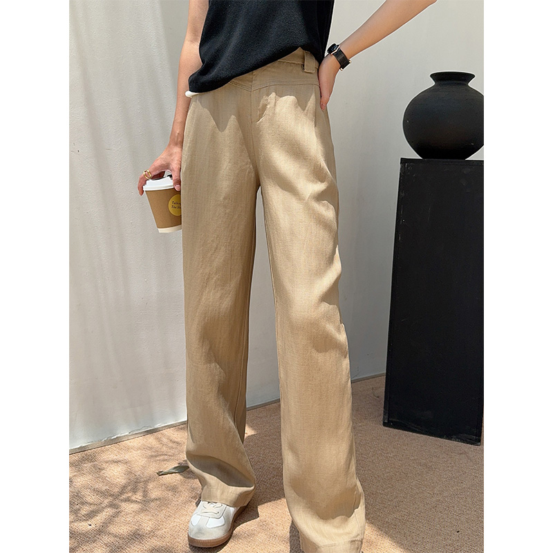 卡其色莱赛尔天丝亚麻阔腿裤女2025年秋季新款直筒薄款香蕉裤子