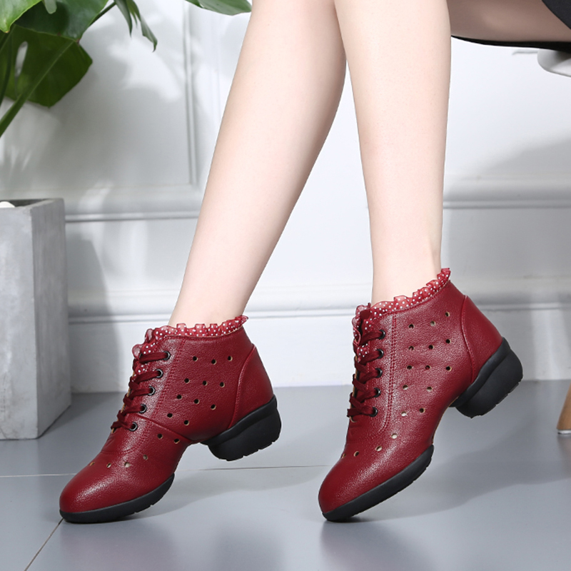 夏季白色舞蹈鞋女士软底镂空广场舞跳舞鞋子水兵舞鞋中跟两点底