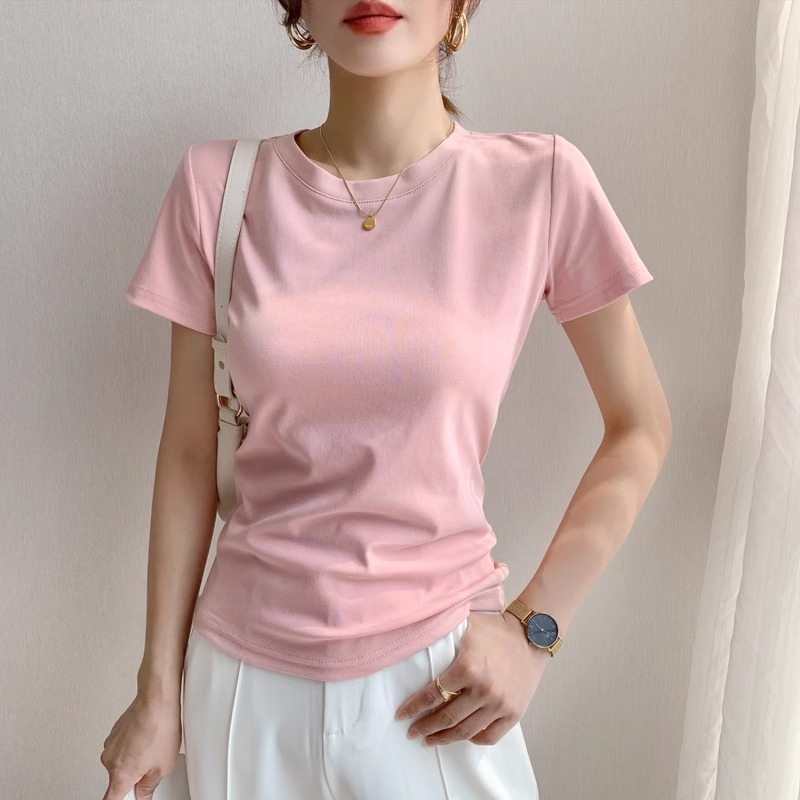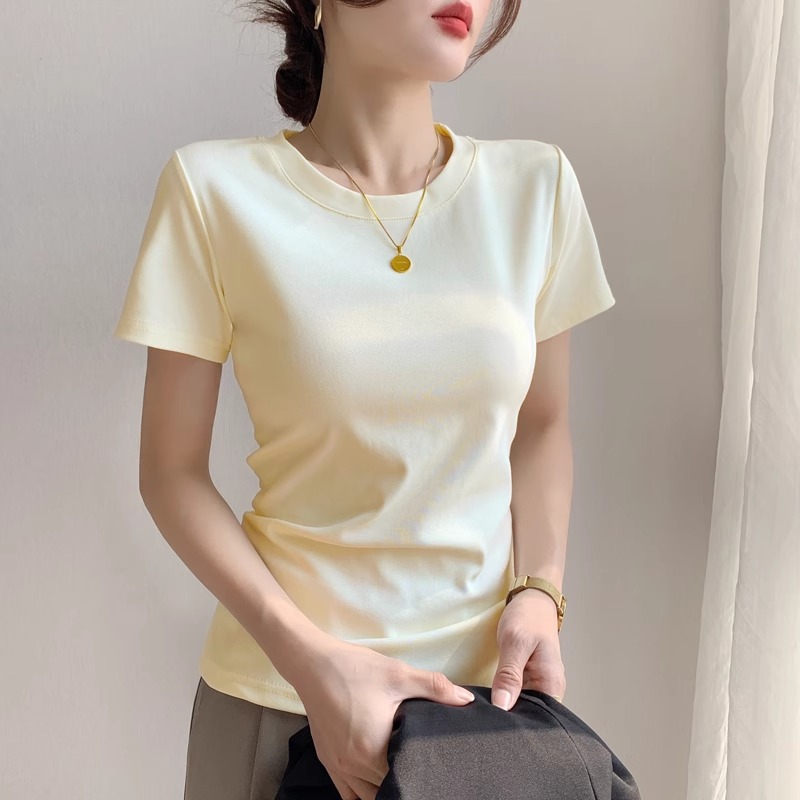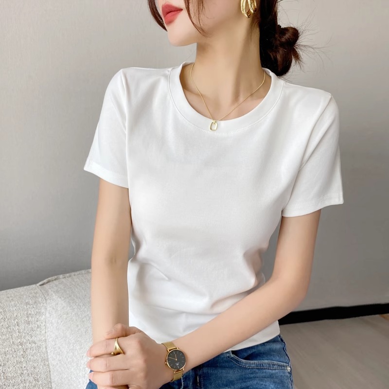 拉夏贝尔圆领短袖T恤女春夏新款正肩修身白色百搭潮流打底上衣服