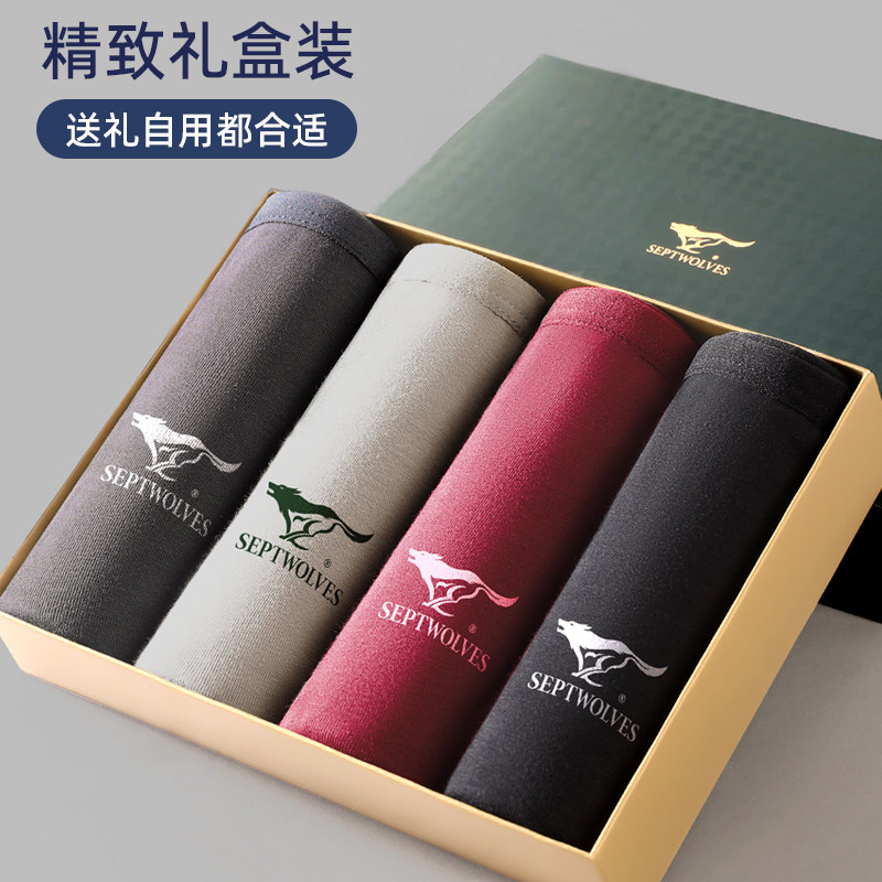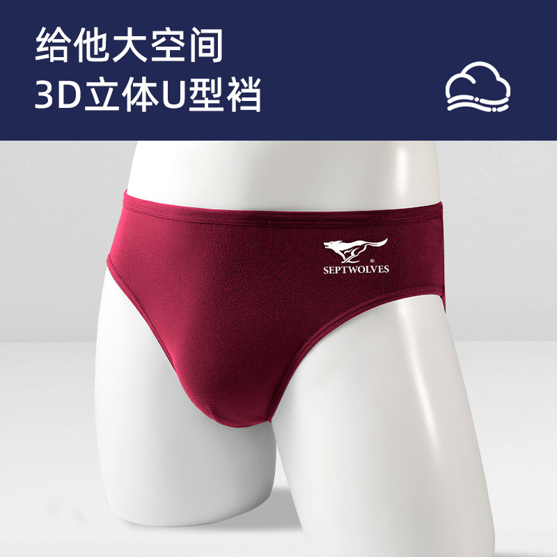 七匹狼男士三角内裤男款纯棉窄边底裤高弹大码短裤头本命年枣红色