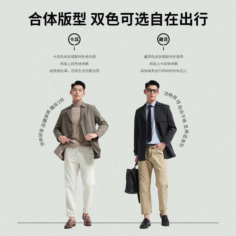 杉杉奥莱男士风衣外套男2025秋季新款高级中长款商务修身翻领夹克