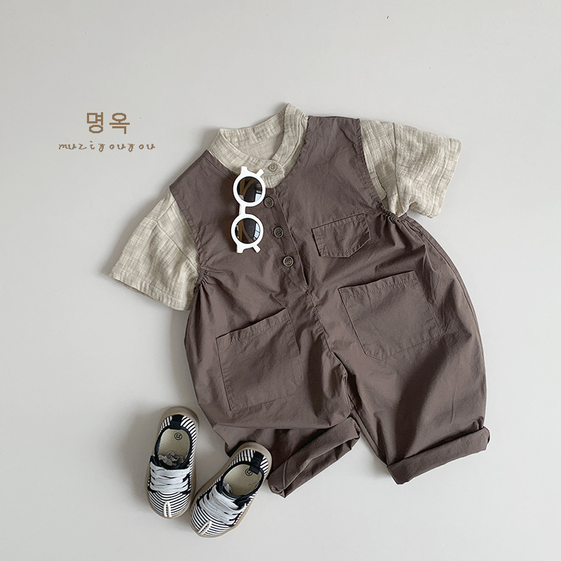 夏男童女童复古无袖连体裤