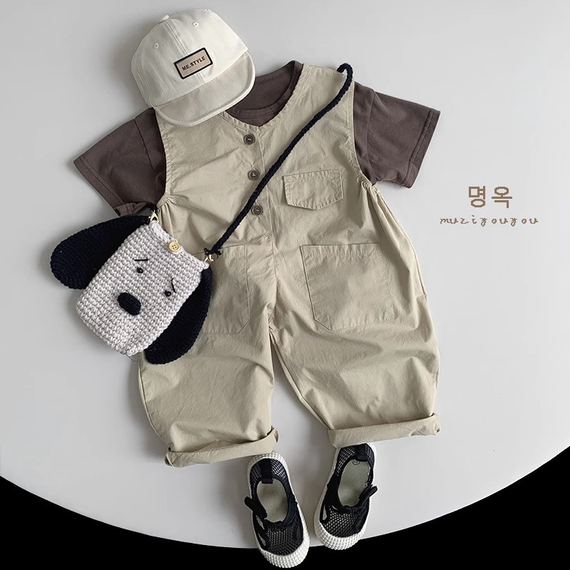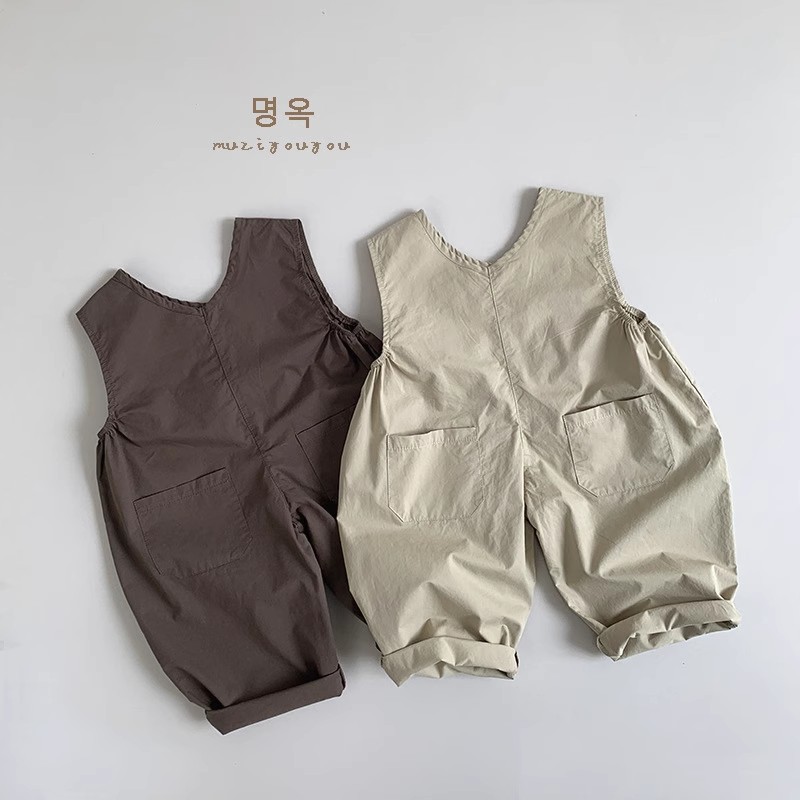 清仓 男童女童复古无袖连体裤宽松儿童宝宝薄款背带裤长裤
