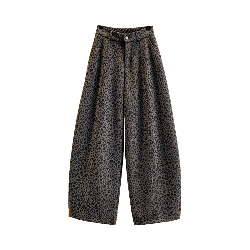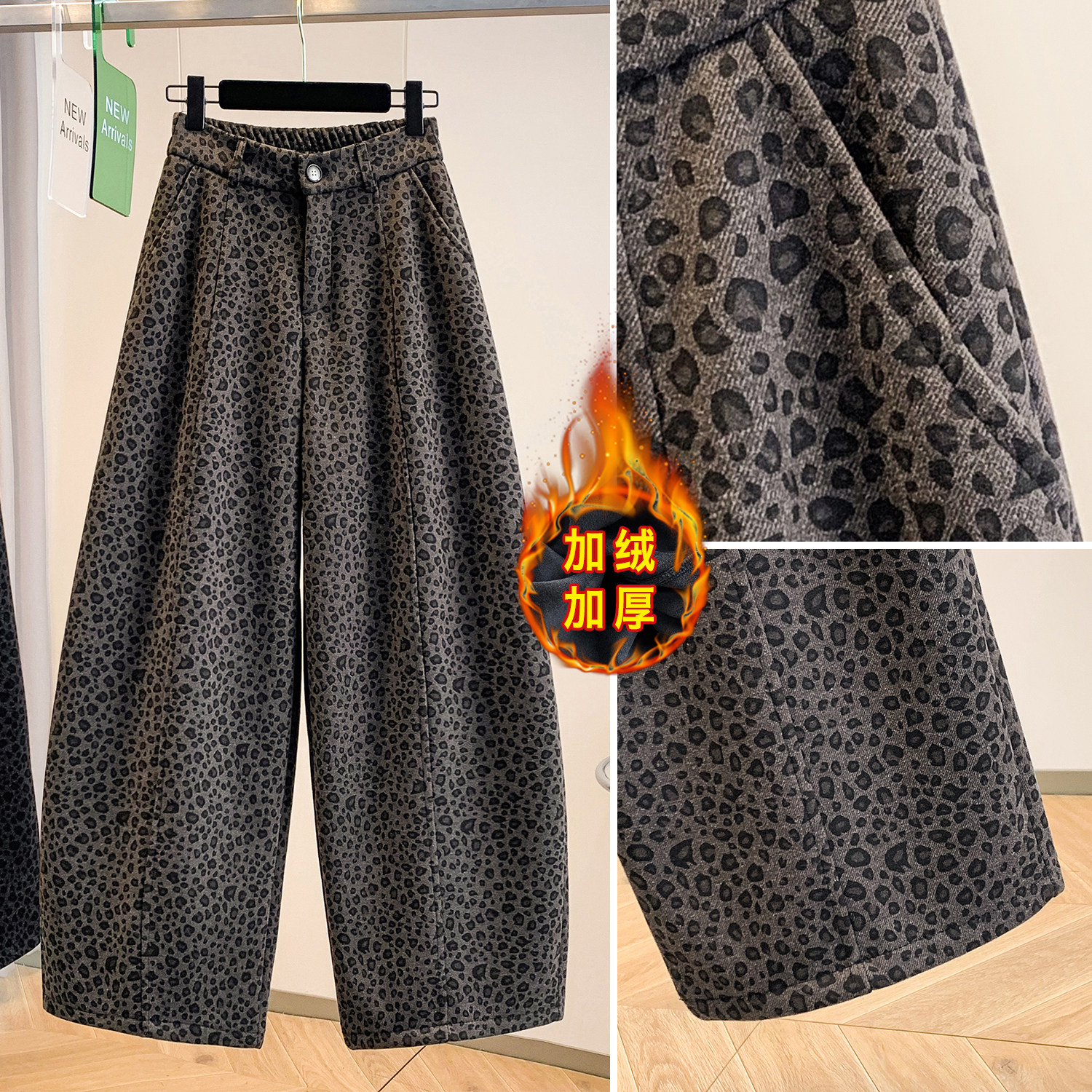 气质豹纹加绒保暖阔腿裤女直筒裤