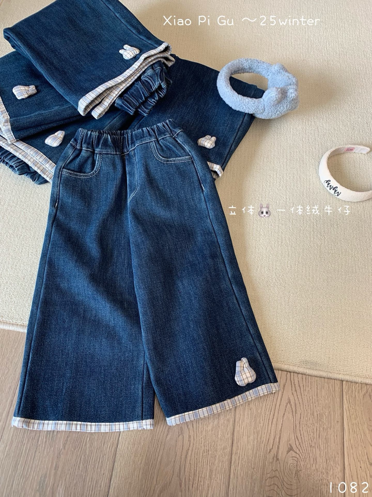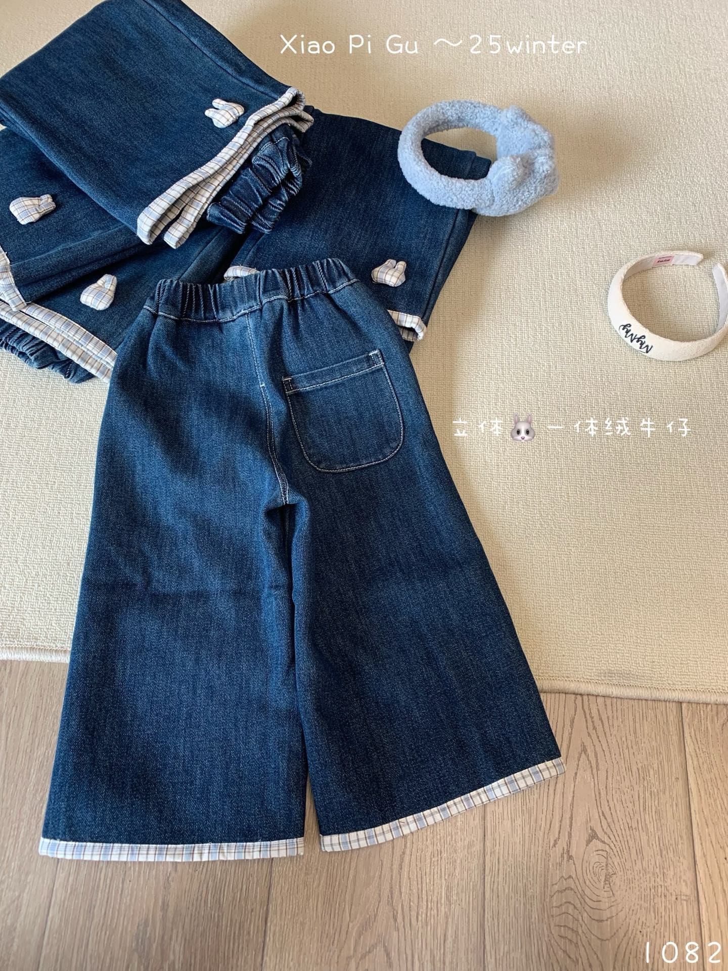 凡妈童装2025秋冬新款女童小童韩版拼接格子边直筒洋气牛仔裤加绒