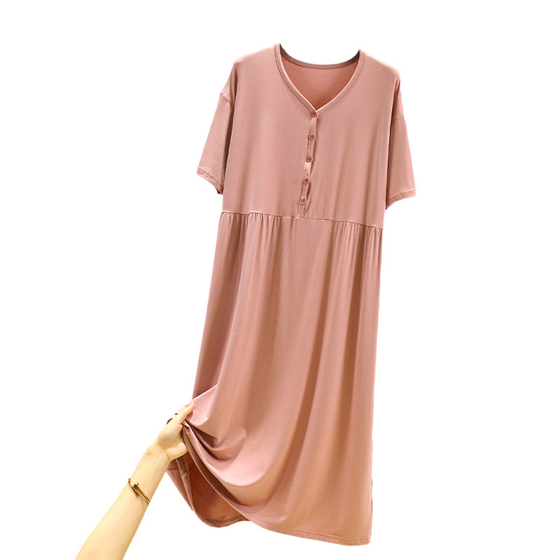 莫代尔短袖连衣裙女夏季内搭修身显瘦大摆裙纯色百搭休闲气质长裙