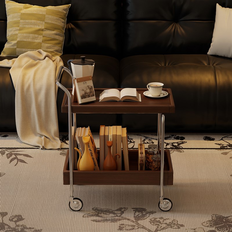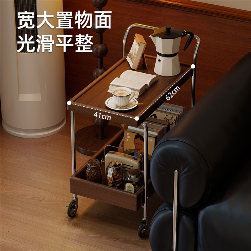 中古小推车双层实木边几可移动茶几桌客厅沙发简约置物架家用餐车