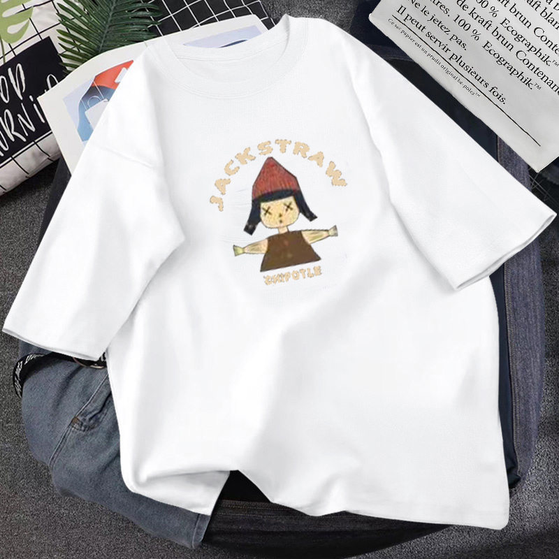 白色打底春季洋气宽松圆领短袖