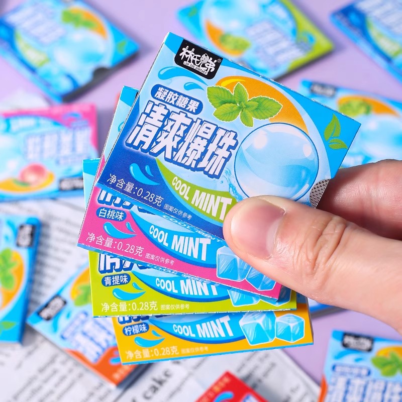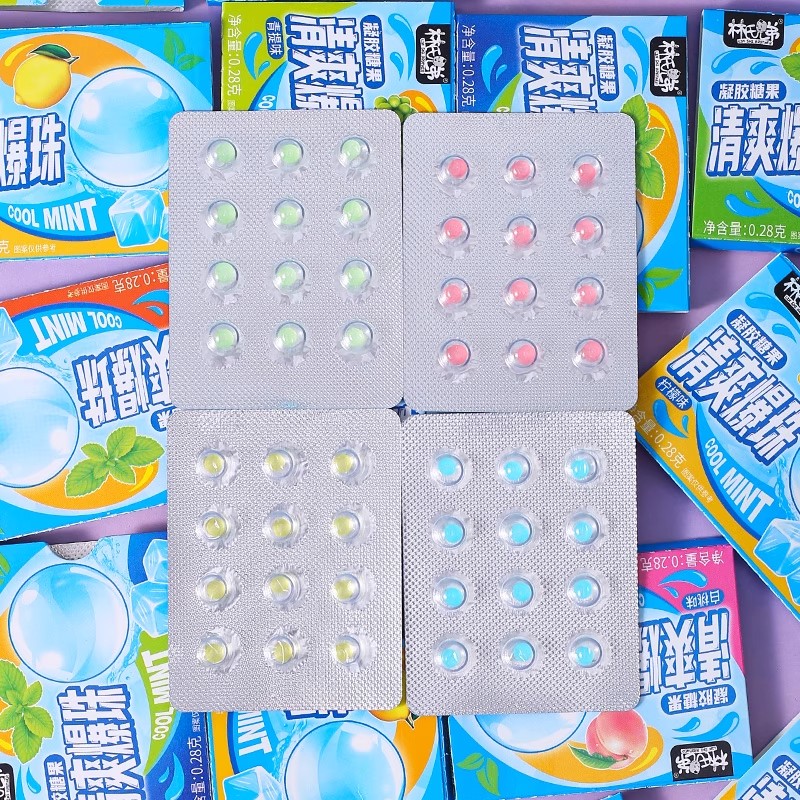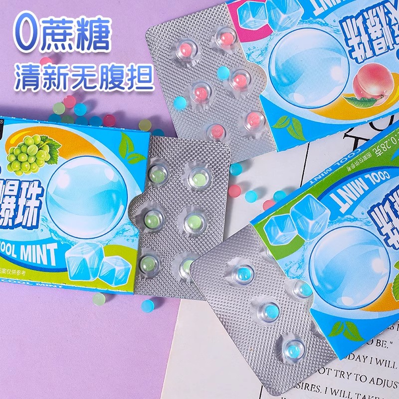劲爽爆珠糖口气清新无糖口香糖清爽接吻糖混合果味夹心糖果小零食