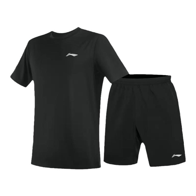李宁跑步运动服套装男夏季新款速干短袖篮球服健身训练短裤两件套