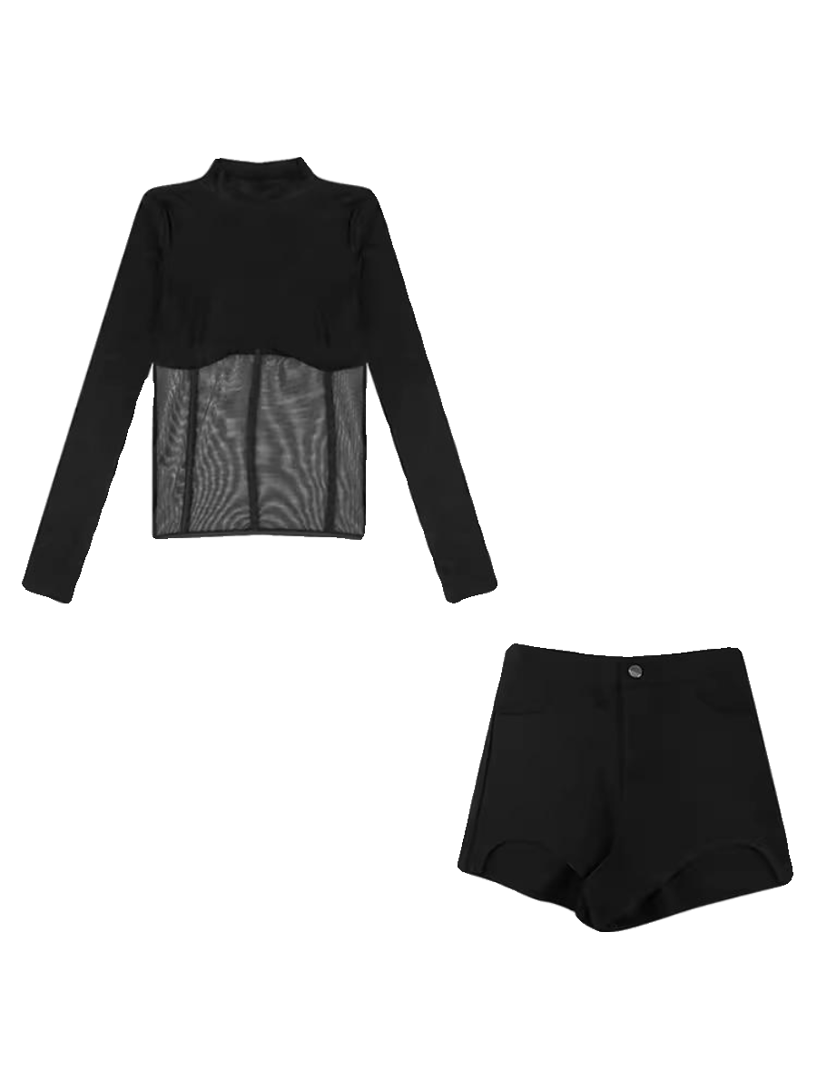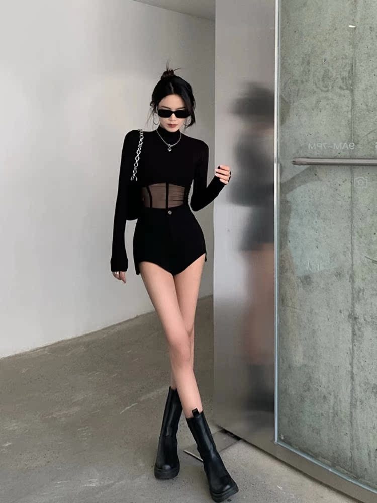 辣妹黑色长袖T恤女装秋季欧美性感蕾丝打底衫设计感紧身网纱上衣