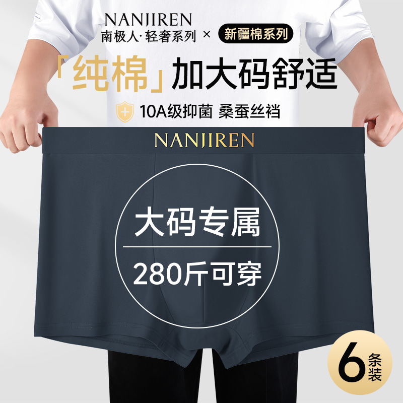 南极人男士内裤男生纯棉加肥加大码肥佬宽松四角短裤胖子2025新款