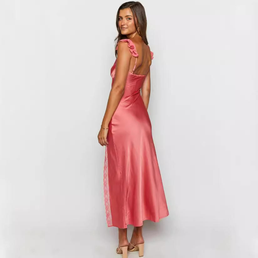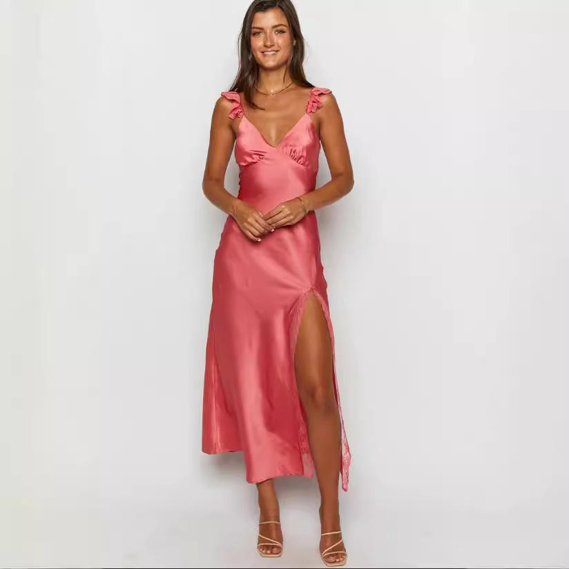 新款 2024年欧美春夏 V领名媛风收腰修身吊带中长款连衣裙