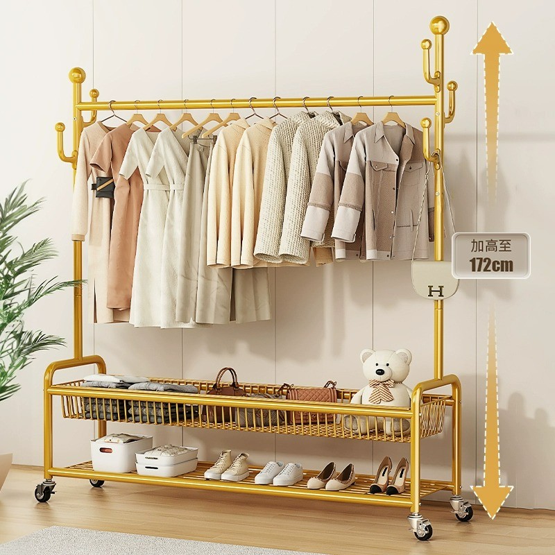 晾衣架落地家用阳台可移动卧室凉衣架室内简易挂衣服衣帽收纳架子